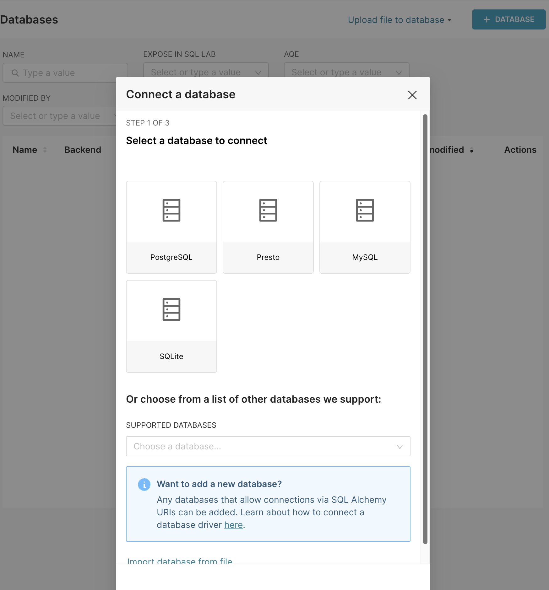 Once Apache Superset is up and running, and you are logged in, you can configure a connection to Spice.